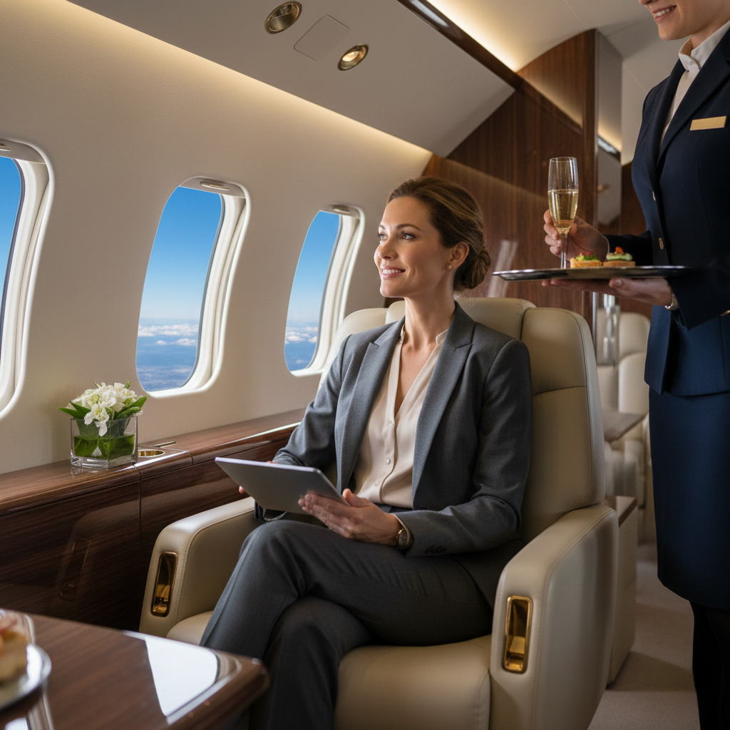 Personalized service from experienced flight crew for a luxury flying experience.